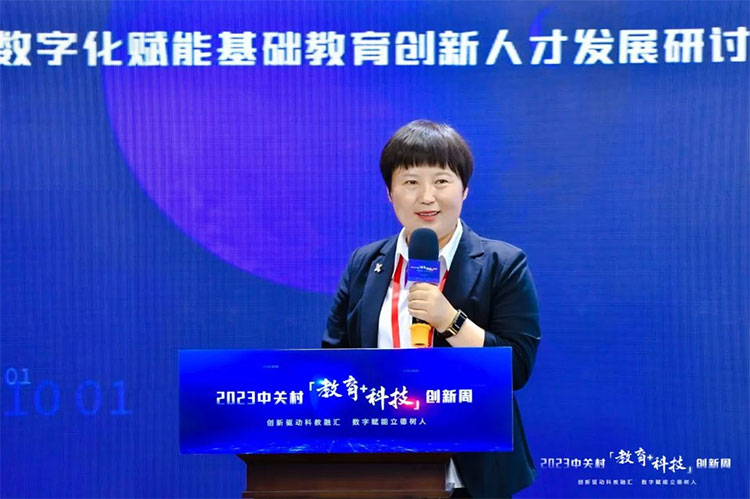 北京市怀柔区桥梓中学校长郝晓丽以《信息技术赋能乡村教师 精准服务提升教育质量》作分享报告。桥梓中学引导青年广泛接触信息技术,培育乡村教师的学科与信息化素养,借助信息化手段实现从作业采集、设计、批改到学情分析与反馈,教研教学管理的全流程数字化,助力精准教学,提高课堂教学效果,实现学生的深度学习和素养提升。