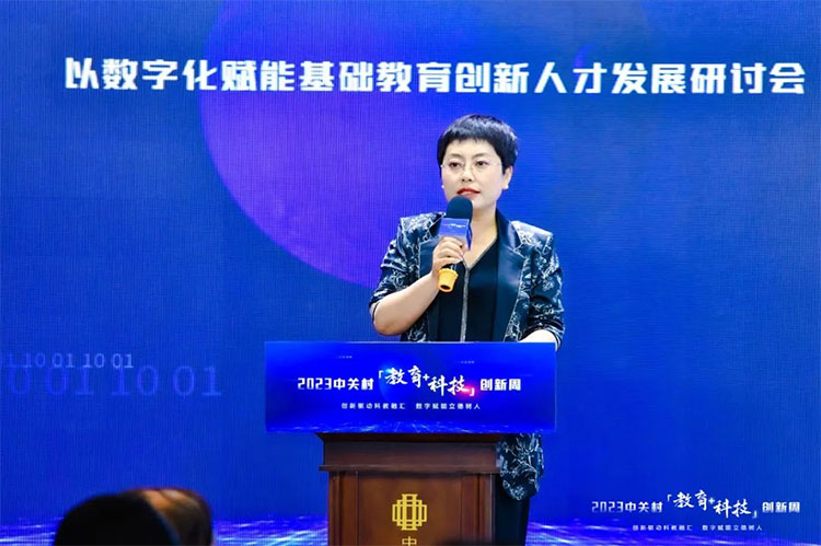 中关村互联网教育创新中心主任杨丹出席研讨会并致辞。杨丹主任认为,教育数字化转型背景下,高质量建设基础教育阶段创新人才培养体系需要关注以下三方面的内容:一是充分利用教育数字资源优势,助力提升“五育”综合素养,为创新人才发展筑牢核心素养之基;二是善于借助技术手段赋能学习,从侧重“重复训练”转变为锻炼创新思维,为创新人才发展插上智慧学习之翼;三是建立科学智能教育评价机制,赋基础教育以终身学习理念,为创新人才发展撑起人生远航之帆。